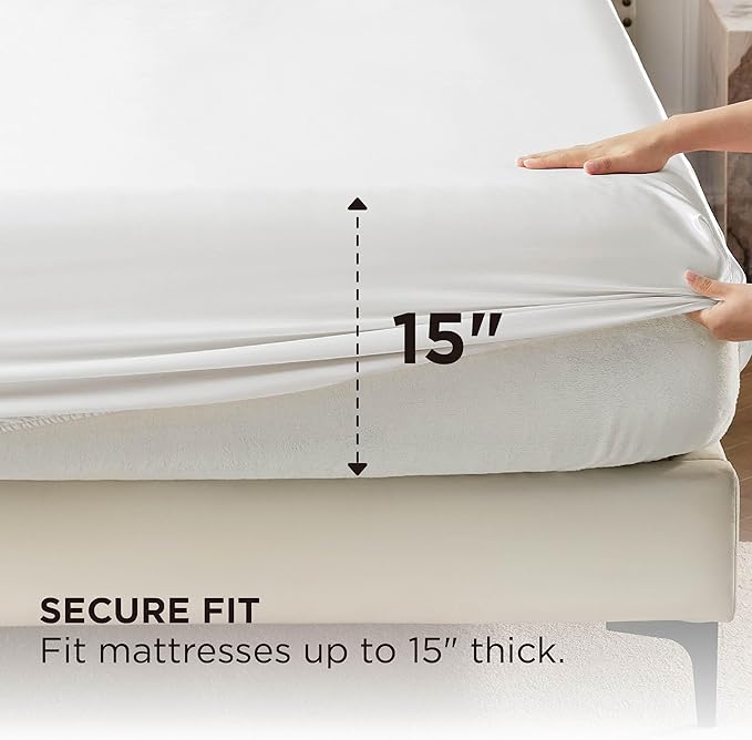 • Tailored For Mattresses: This sheet set includes a fitted sheet with a 15-inch deep pocket to accommodate most mattresses, ensuring a smooth, secure fit